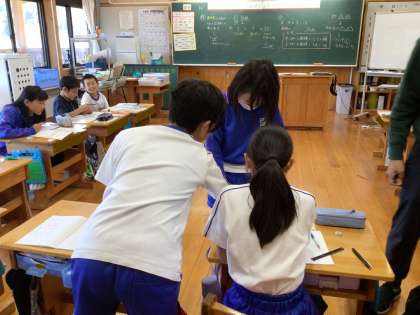 途中、わからないところなどを、席の近くの子同士で教え合いました。