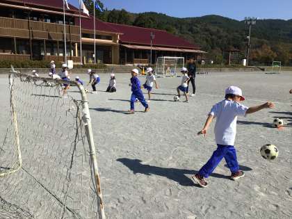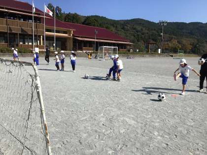 今日は、名古屋グランパス主催のサッカー教室を1、2年生の子を対象に行いました。