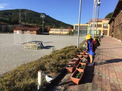 子どもたちは、登校すると、昨日苗を植えたマイプランターをのぞきこんでいました。
