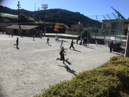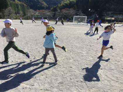 今日のお昼は全校体育で警泥を行いました。運動場いっぱいに広がってとても楽しそうです。
