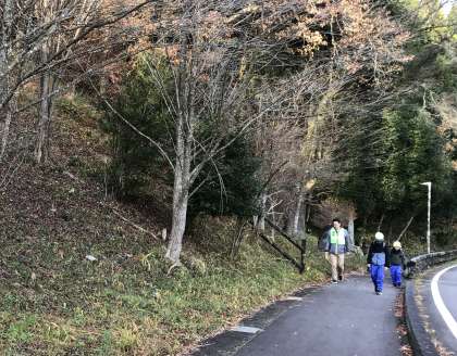 アジサイ坂が凍てつく日が多くなり、スクールバスは駐車場までのぼってきています。