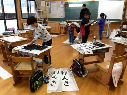 3年生が、毛筆で書き初めを練習しました。