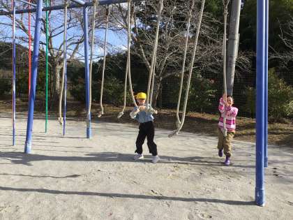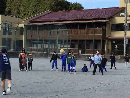 運動場では、遊具や、ドッジボールをして、子どもたちが元気に遊んでいました。