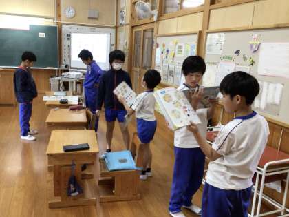 色を英語で書いたとき、含まれるアルファベットが何かを尋ねて、色を当てるというものです。
