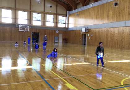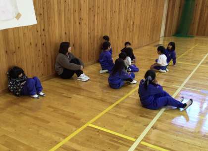 1年生の子たちが、ダルマさんが転んだをして遊びました。