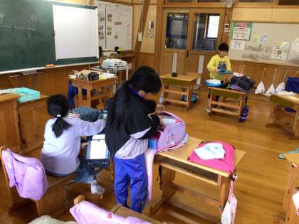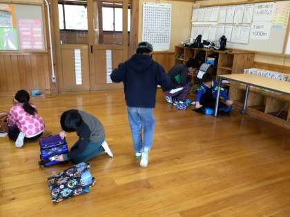 3年生の教室では、荷物を持ち帰る支度をしました。