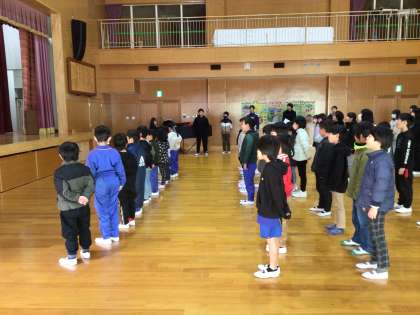 子どもたちは、今年初の全校集会に、引き締まった表情で集まりました。