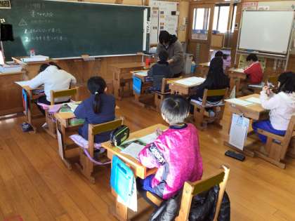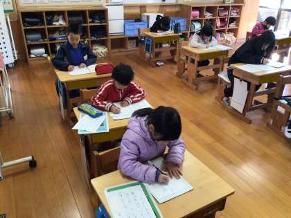 1・2年生は、硬筆です。写真は2年生の様子です。
