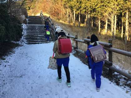 昨日、日の当たった運動場は、もう雪がありません。「雪がなくなっちゃった」と子どもたちは少し残念そう。今日も雪で遊びたかったようです。