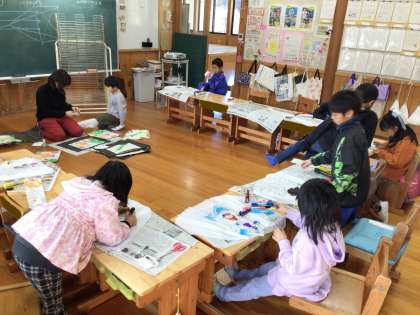 1年生が凧を作っていました。