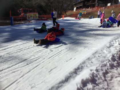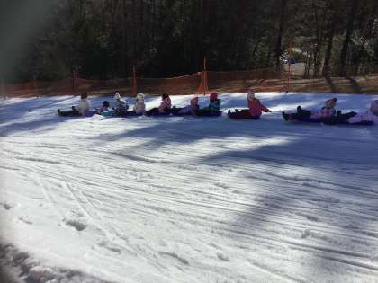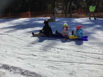 午後の部開始です。午前中にコツをつかんだようで、午後からはそりを長くつなげて滑ったり、競争したりする様子も見られました。