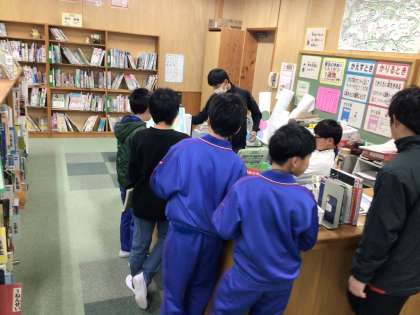 朝の図書館にはたくさんの子どもたちが本を借りにきていました。