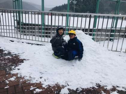 さっそく雪遊びをする元気さです。