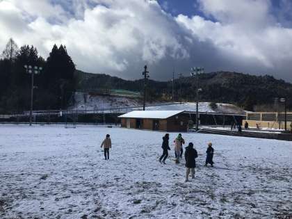 お日様が出てきましたが、校庭にはまだ雪が残っています。