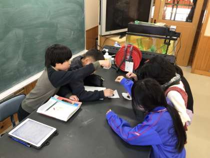 鉄くぎに砂鉄がくっつく様子を見せてくれました。