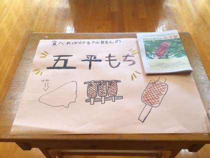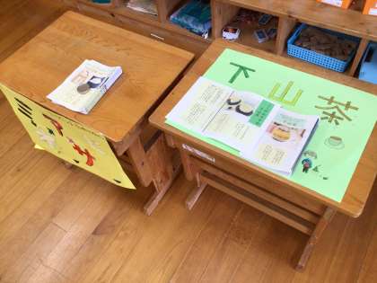 しもやまの名物を調べ、写真と文章で説明したリーフレットでした。