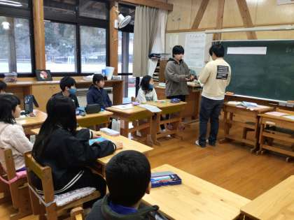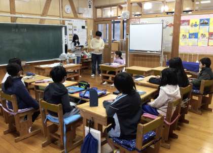 2年生の教室にいると、5年生の子たちがお知らせにやって来ました。