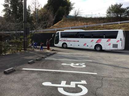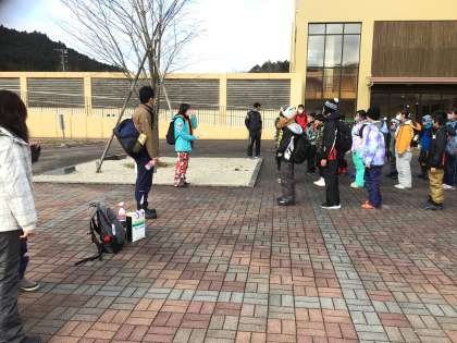 今日は待ちに待ったスキー教室です。担当の先生からバス内での注意事項を聞いてから出発です。1年生たちの一生懸命のお見送りです。