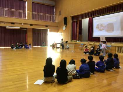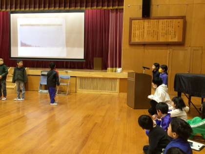 1、2年生の子たちが、送る会での出し物のリハーサルをしました。