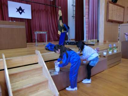 卒業式式場の準備の様子です。