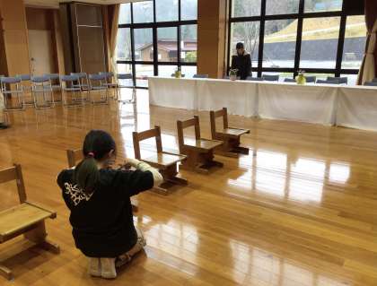 今年は、新入生の子たちの晴れ姿を、保護者の皆様に少しでも近くで見ていただけるよう、保護者席を会場の後ろだけでなく、左右にもご用意しました。