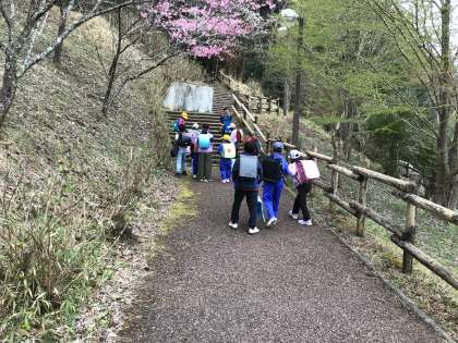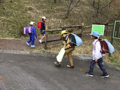 春の交通安全市民運動の期間です。担当の先生が徒歩班と一緒に登校してきました。朝から元気なあいさつの声がとびかっています。