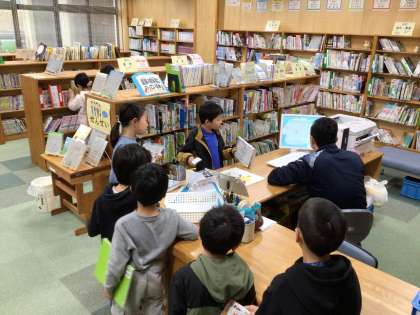 その後、図書館へ行くと、たくさんの子たちが訪れていました。今日は室内で読書ですね。