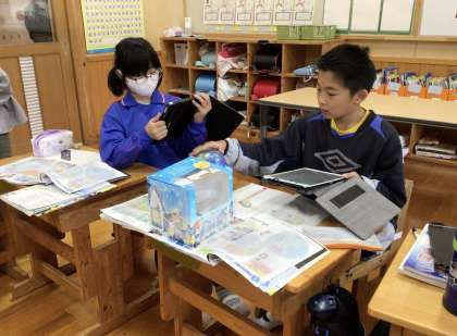 5年生の社会科では、アースボールを使って学習しました。