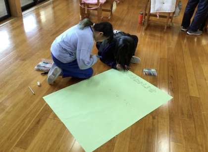 6年生は、司会進行などを行います。内容をタブレットにメモをしたり、模造紙に書いたりしました。