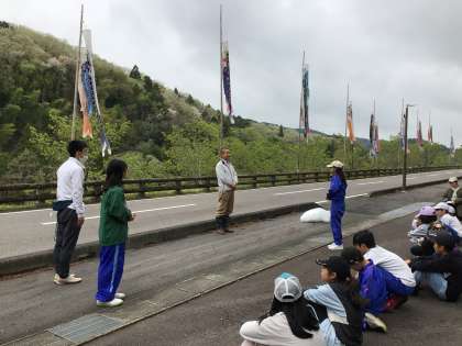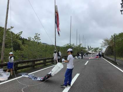 5、6年生の鯉のぼり設置体験の様子です。