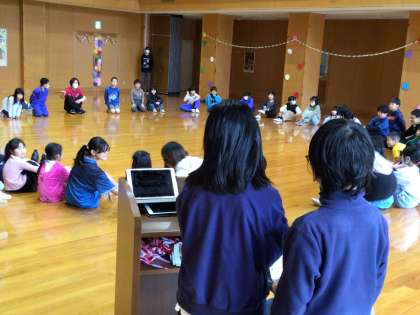 「学校で頑張りたいことはなんですか?」「算数です」「一輪車です」など。