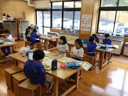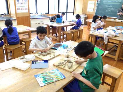 道具を使って、切ったり、かき出したり、くっつけたりしたら、おもしろい形になりました。