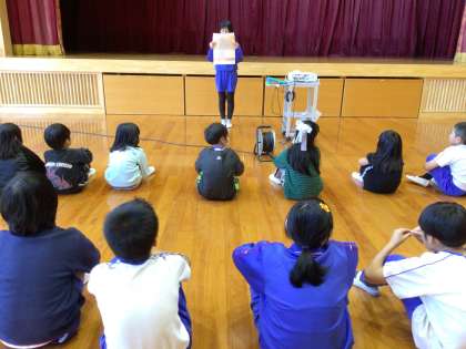 子どもたちが、多くの人の前で表現する力を付ける取組です。