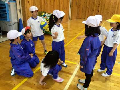 1、2年生の体育では、ボールを使った運動をしました。