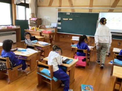 1年生は算数に熱心に取り組んでいました。できた子は早く先生に見てもらいたくて仕方ありません。
