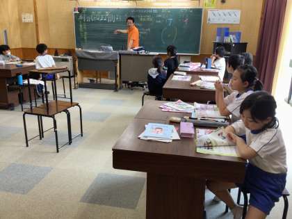 3、4年生の音楽では、楽譜の記号について学習をしていました。