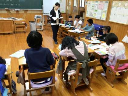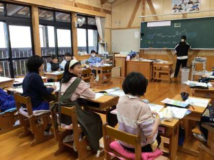 「輪中」という言葉を学んでいたとき、園の先生が教室に入って来て、子どもたちはびっくりです。