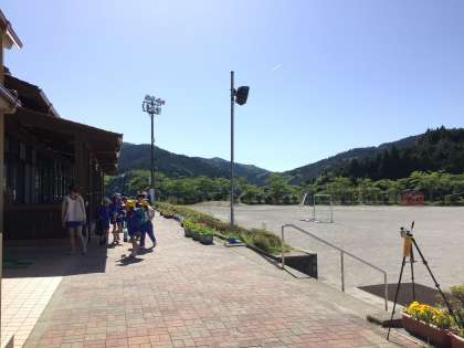 校庭では、熱中症予防のため、WBGT(暑さ指数)を測定しています。