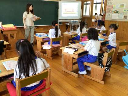 挿絵やブロックを用いて、楽しい雰囲気の中、学習が進んでいきました。