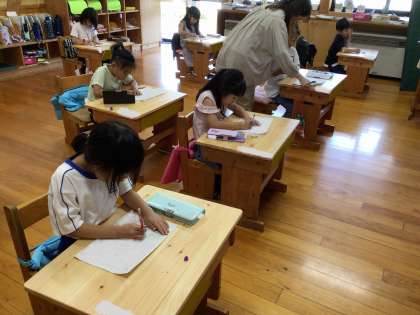 ゆっくり、ゆっくりと鉛筆で書いていました。