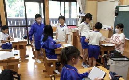 子どもたちが下書きを先生に見せると、「いいじゃん」とほめられていました。