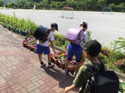 特色ある学校づくり推進事業で取り組んでいるチームプランターに子どもたちが集まっていました。