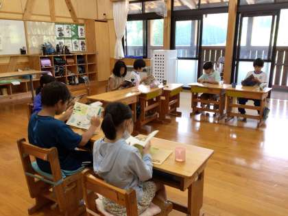 月曜日の朝は読書タイムです。 4年生の子たちが、静かに本を読んでいました。