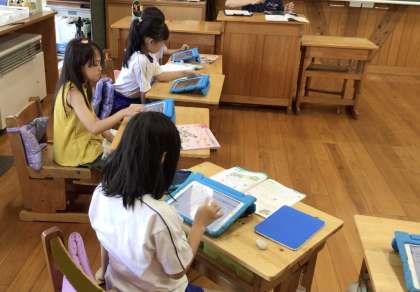 先生が、一人一人に問題をデータで送り、子どもたちはそれを受信して解きました。