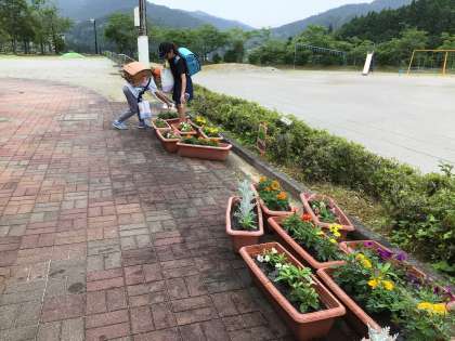 登校したら、すぐにチームプランターの花の様子を見に行きました。
