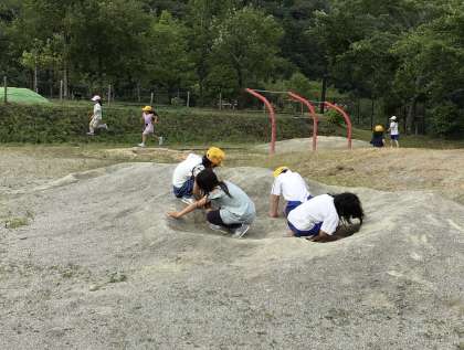 運動場の方では、砂場や、ブランコで遊んでいました。