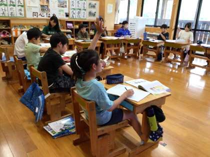 手をあげて発言したり、姿勢よく前を見たり、じっくりと考えてノートにメモしたりと、真剣に取り組む姿が見られました。