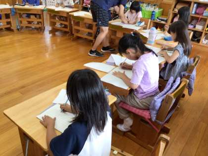行頭は、ひとマス空けます。子どもたちは、注意深く、原稿用紙の書き方に沿って丁寧に書きました。