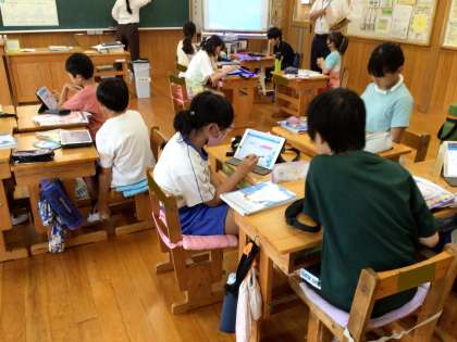 各自の考えをタブレットに入力し、伝え合いました。