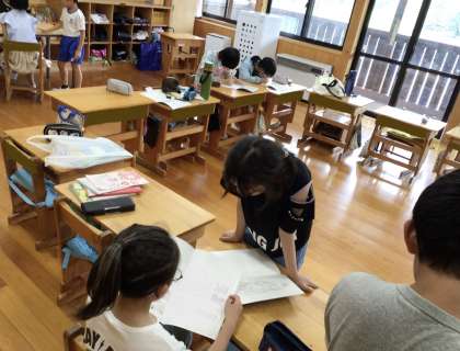真ん中は、教室に戻ってノートやパンフレットを見たり使ったりしている様子です。